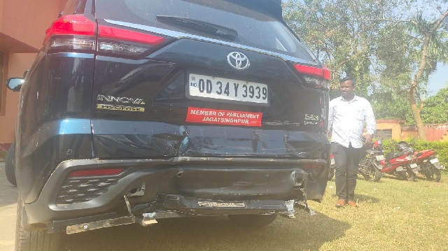 ଜଗତସିଂହପୁର ସାଂସଦ ବିଭୁ ପ୍ରସାଦ ତରାଇଙ୍କ ଗାଡି ଦୁର୍ଘଟଣାଗ୍ରସ୍ତ । ଅଳ୍ପକେ ବର୍ତ୍ତିଲେ ସାଂସଦ । ସାଂସଦ ଖେଳ ମହୋତ୍ସବରେ ଯୋଗ ଦେବା ପାଇଁ ଭୁବନେଶ୍ୱରରୁ ଜଗତସିଂହପୁର ଆସୁଥିବା ବେଳେ ୫୫ ନମ୍ବର ଜାତୀୟ ରାଜପଥର ହାଜିପୁର ନିକଟରେ ତାଙ୍କର କାର ଦୁର୍ଘଟଣାଗ୍ରସ୍ତ ହୋଇଛି । ସାଂସଦଙ୍କ କାରକୁ ପଛପଟୁ ଆସୁଥିବା ଏକ କାର ଧକ୍କା ଦେଇଥିଲା । ଗାଡିଟି ବ୍ୟାପକ କ୍ଷତିଗ୍ରସ୍ତ ହୋଇଛି। ଦୁର୍ଘଟଣା ଘଟାଇଥିବା କାର ସହ ଚାଳକ ବିରିଡି ଥାନାରେ ଅଟକ ।