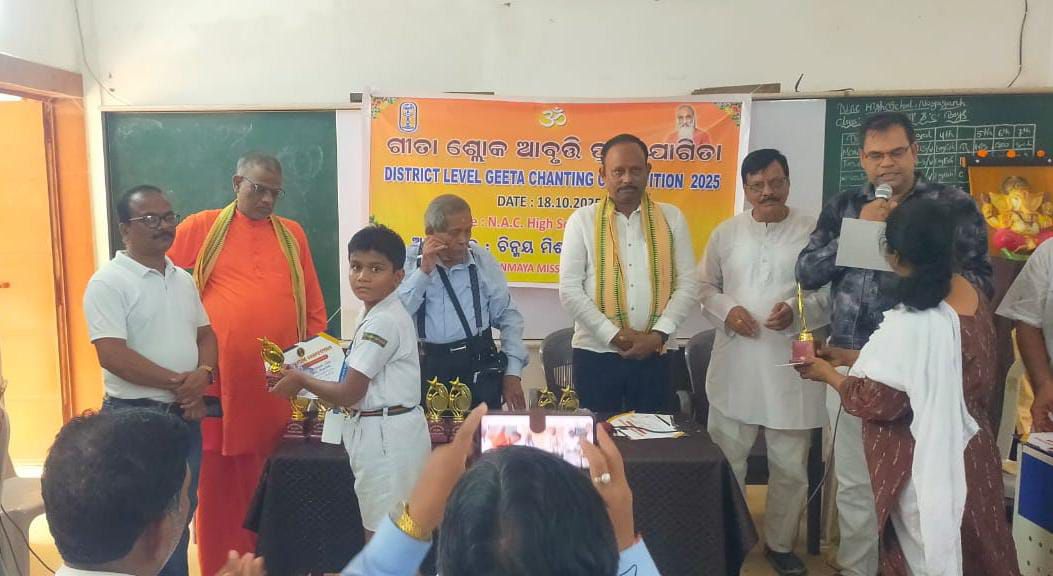 ନୟାଗଡ଼,(ଓଡ଼ିଶା ଦର୍ପଣ): ଚିନ୍ମୟ ମିଶନ ନୟାଗଡ଼ ଜିଲ୍ଲା ଶାଖା ପକ୍ଷରୁ ଗୀତା ଆବୃତ୍ତି ପ୍ରତିଯୋଗିତା ସ୍ଥାନୀୟ ଏନଏସି ହାଇସ୍କୁଲ ଠାରେ ଅନୁଷ୍ଠିତ ହୋଇଯାଇଛି। ଏଥିରେ ଜିଲ୍ଲାର ବିଭିନ୍ନ ଅଞ୍ଚଳରୁ ପ୍ରାଥମିକ ଶ୍ରେଣୀରୁ ଆରମ୍ଭ କରି ଉଚ୍ଚ ମାଧ୍ୟମିକ ବିଦ୍ୟାଳୟ ପର୍ଯ୍ୟନ୍ତ ବିଭିନ୍ନ ବର୍ଗରେ ଛାତ୍ରଛାତ୍ରୀ ମାନେ ଅଂଶ ଗ୍ରହଣ କରିଥିଲେ। ଅନୁଷ୍ଠାନ ସଭାପତି ସୁରେନ୍ଦ୍ର ନାଥ ମହାପାତ୍ରଙ୍କ ଅଧ୍ୟକ୍ଷତାରେ ଅନୁଷ୍ଠିତ ଏହି କାର୍ଯ୍ୟକ୍ରମକୁ ଚିନ୍ମୟ ମିଶନ ଭୁବନେଶ୍ୱରର ସ୍ୱାମୀ ସଦାନନ୍ଦ ସରସ୍ବତୀ ପ୍ରଦୀପ ପ୍ରଜ୍ବଳନ କରି ଉଦଘାଟନ କରିଥିଲେ। ଶେଷରେ ଅନୁଷ୍ଠିତ ପୁରସ୍କାର ବିତରଣ କାର୍ଯ୍ୟକ୍ରମରେ ମୁଖ୍ୟ ଅତିଥି ଭାବେ ଜିଲ୍ଲା ପରିଷଦ ଅଧ୍ୟକ୍ଷ ଇଂ ଦେବାଶିଷ ପଟ୍ଟନାୟକ ଯୋଗଦାନ କରି କୃତିତ୍ୱ ହାସଲ କରିଥିବା କୌସ୍ତୁଭ ନାରାୟଣ ଦାଶ, ପ୍ରିତମ ପ୍ରିୟଦର୍ଶି ତ୍ରିପାଠୀ,ଶ୍ରୀମୟୀ ପ୍ରିୟଦର୍ଶିନୀ,ସାଇ ପ୍ରସାଦ ଦାଶ,ବିଶ୍ୱ ପ୍ରକାଶ ସାହୁ,ଦିବ୍ୟରଞ୍ଜନ ଦାଶ,ନୀଳମାଧଵ ପାଢ଼ୀ,ସତ୍ୟଜିତ ସାମନ୍ତରାୟ,ନାରାୟଣ ଦାଶ,ସ୍ୱାଗତ କୁମାର ମହାପାତ୍ର ପ୍ରମୁଖଙ୍କୁ ମାନପତ୍ର ଏବଂ ଟ୍ରଫି ଗ୍ରହଣ କରିଥିଲେ।ପ୍ରାରମ୍ଭରେ ସମ୍ପାଦକ ଘନଶ୍ୟାମ ସାହୁ ଅତିଥି ପରିଚୟ ପ୍ରଦାନ କରିଥିବା ବେଳେ ଗୀତା ଆବୃତ୍ତି ପ୍ରତିଯୋଗିତାର ବିଚାରକ ଭାବେ ପୂର୍ବତନ ଅଧ୍ୟକ୍ଷ ବିଜୟ କୁମାର ରଥ,ଅଧ୍ୟାପକ ଡ.ସନ୍ତୋଷ କୁମାର ସାହୁ ଏବଂ ଅଧ୍ୟାପିକା ନୀଳିମା ନନ୍ଦ ଯୋଗଦାନ କରିଥିଲେ। ଚିନ୍ମୟ ମିଶନ ସଦସ୍ୟ ଶ୍ରାବଣୀ ମିଶ୍ର,ଅରୁଣ ମହାନ୍ତି, ହରେକୃଷ୍ଣ ସାହୁ,ପ୍ରଦୀପ କୁମାର ସାହୁ, ରବୀନ୍ଦ୍ର ମହାପାତ୍ର, ଲକ୍ଷ୍ମୀଧର ସାହୁ,ପ୍ରଦୀପ୍ତ ସାହୁ,ସତ୍ୟନାରାୟଣ ସାହୁ, ପ୍ରଫୁଲ୍ଲ ନାୟକ,ଉଦୟନାଥ ନାୟକ ପ୍ରମୁଖ କାର୍ଯ୍ୟକ୍ରମ ପରିଚାଳନାରେ ସହଯୋଗ କରିଥିଲେ।