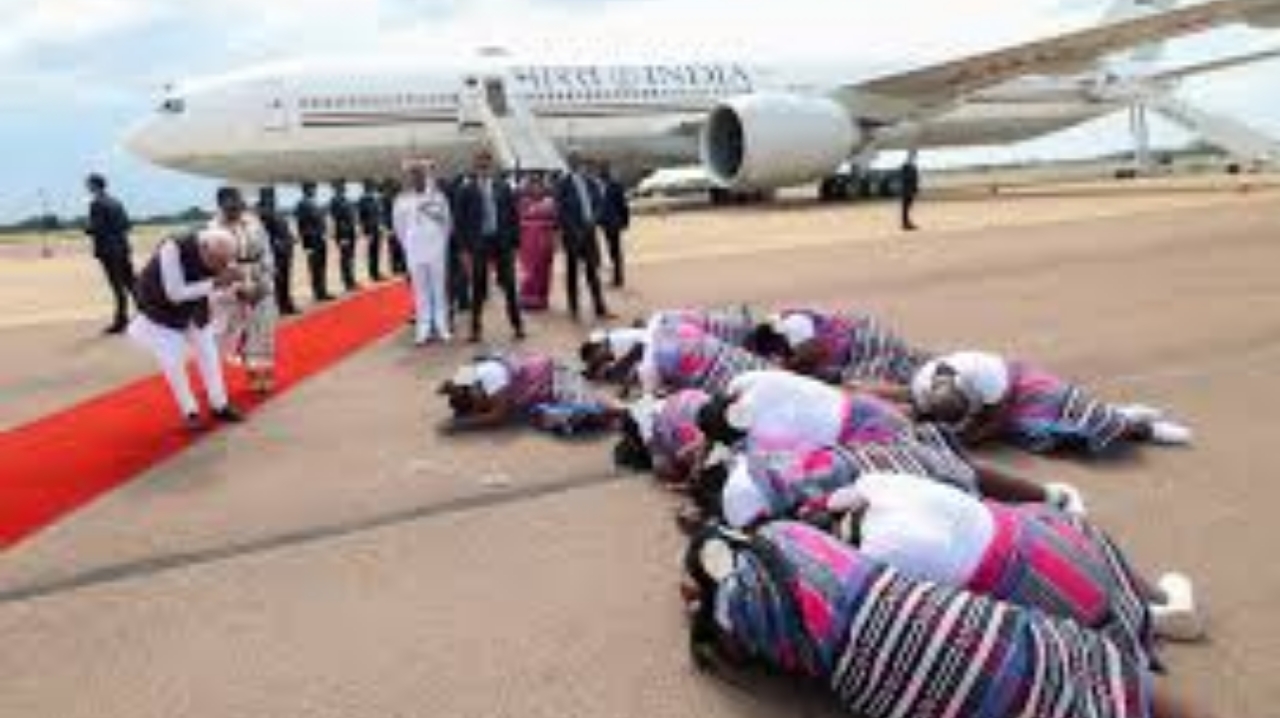 ପ୍ରଧାନମନ୍ତ୍ରୀ ନରେନ୍ଦ୍ର ମୋଦିଙ୍କ ଦକ୍ଷିଣ ଆଫ୍ରିକା ଗସ୍ତ କାର୍ଯ୍ୟକ୍ରମ ଶୁକ୍ରବାର ଆରମ୍ଭ ହୋଇଛି। ଏହି କ୍ରମରେ ପ୍ରଧାନମନ୍ତ୍ରୀ ଜୋହନ୍ସବର୍ଗ ପହଞ୍ଚିଥିବା ବେଳେ ସେଠାରେ ଲୋକେ ତାଙ୍କୁ ଆଣ୍ଠେଇ ପଡି ମୁଣ୍ଡିଆମାରି ସ୍ୱାଗତ କରିଛନ୍ତି।ଏହି ଭିଡିଓ ଏବେ ସୋସିଆଲ ମିଡିଆରେ ଅପଲୋଡ ହୋଇଥିବା ବେଳେ ତାହା ଭାଇରାଲ ହୋଇଯାଇଛି। ମୁଣ୍ଡିଆମାରି ଅତିଥିଙ୍କୁ ସ୍ୱାଗତ କରିବା ଭାରତୀୟ ପରମ୍ପରାରେ ରହିଛି। ଏହି ସଂସ୍କୃତି ଅନୁକରଣରେ ପ୍ରଧାମନ୍ତ୍ରୀଙ୍କୁ ଦକ୍ଷିଣ ଆଫ୍ରିକାରେ ସ୍ୱାଗତ କରାଯାଇଥିବା ବେଳେ ପ୍ରଧାନମନ୍ତ୍ରୀ ମଧ୍ୟ ନଇଁକି ନମସ୍କାର କରି ଅଭିବାଦନ ଗ୍ରହଣ କରିଛନ୍ତି।ପ୍ରଧାନମନ୍ତ୍ରୀ ନରେନ୍ଦ୍ର ମୋଦି ଦକ୍ଷିଣ ଆଫ୍ରିକାରେ ଅନୁଷ୍ଠିତ ହେଉଥିବା G20 ଶିଖର ସମ୍ମିଳନୀର ତିନୋଟି ଅଧିବେଶନକୁ ସମ୍ବୋଧିତ କରିବାର ସମ୍ଭାବନା ରହିଛି । ସେହି ଅଧିବେଶନଗୁଡିକ ହେଉଛି:-