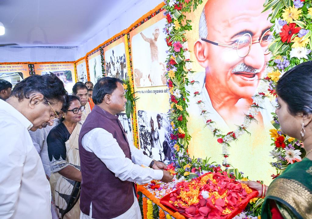 ଓଡ଼ିଶା ବିଧାନସଭା ପରିସରରେ ଆଜି ଜାତିର ଜନକ ମହାତ୍ମାଗାନ୍ଧୀଙ୍କ ୧୫୬ ତମ ଜୟନ୍ତୀ ପାଳନ କରାଯାଇଛି । ଏହି କାର୍ଯ୍ୟକ୍ରମରେ ରାଜ୍ୟପାଳ ହରିବାବୁ କମ୍ଭମପତି, ମୁଖ୍ୟମନ୍ତ୍ରୀ ମୋହନ ଚରଣ ମାଝୀ ଓ ବାଚସ୍ପତି ସୁରମା ପାଢୀଙ୍କ ସମେତ ବହୁ ମନ୍ତ୍ରୀ ଓ ଅଧିକାରୀ ସାମିଲ ହୋଇଥିଲେ । ମହାତ୍ମା ଗାନ୍ଧୀଙ୍କ ପ୍ରତିମୂର୍ତ୍ତିରେ ପୁଷ୍ପମାଲ୍ୟ ଅର୍ପଣ କରି ଶ୍ରଦ୍ଧାଞ୍ଜଳି ଜଣାଇବା ସହ ତାଙ୍କ ନୀତି, ଆଦର୍ଶ ଏବଂ ଅବଦାନକୁ ମୁଖ୍ୟମନ୍ତ୍ରୀ ଏହି ଅବସରରେ ମନେ ପକାଇଥିଲେ।ମୁଖ୍ୟମନ୍ତ୍ରୀ ସୋସିଆଲ ମିଡିଆ ଏକ୍ସରେ କହିଛନ୍ତି, ସତ୍ୟ ଓ ଅହିଂସାର ପ୍ରତୀକ ‘ମହାତ୍ମା ଗାନ୍ଧୀ’ଙ୍କ ଜୟନ୍ତୀ ଅବସରରେ ଭକ୍ତିପୂତ ପ୍ରଣାମ। ତାଙ୍କ ପ୍ରଦର୍ଶିତ ସ୍ୱଦେଶୀ ଓ ଆତ୍ମନିର୍ଭରତାର ମାର୍ଗ ଆଜି ବିକଶିତ ଭାରତର ମୂଳମନ୍ତ୍ର ସାଜିଛି। ତାଙ୍କ ଆଦର୍ଶ ସର୍ବଦା ଆମ ପାଇଁ ପ୍ରେରଣା ହୋଇ ରହିବ ।
