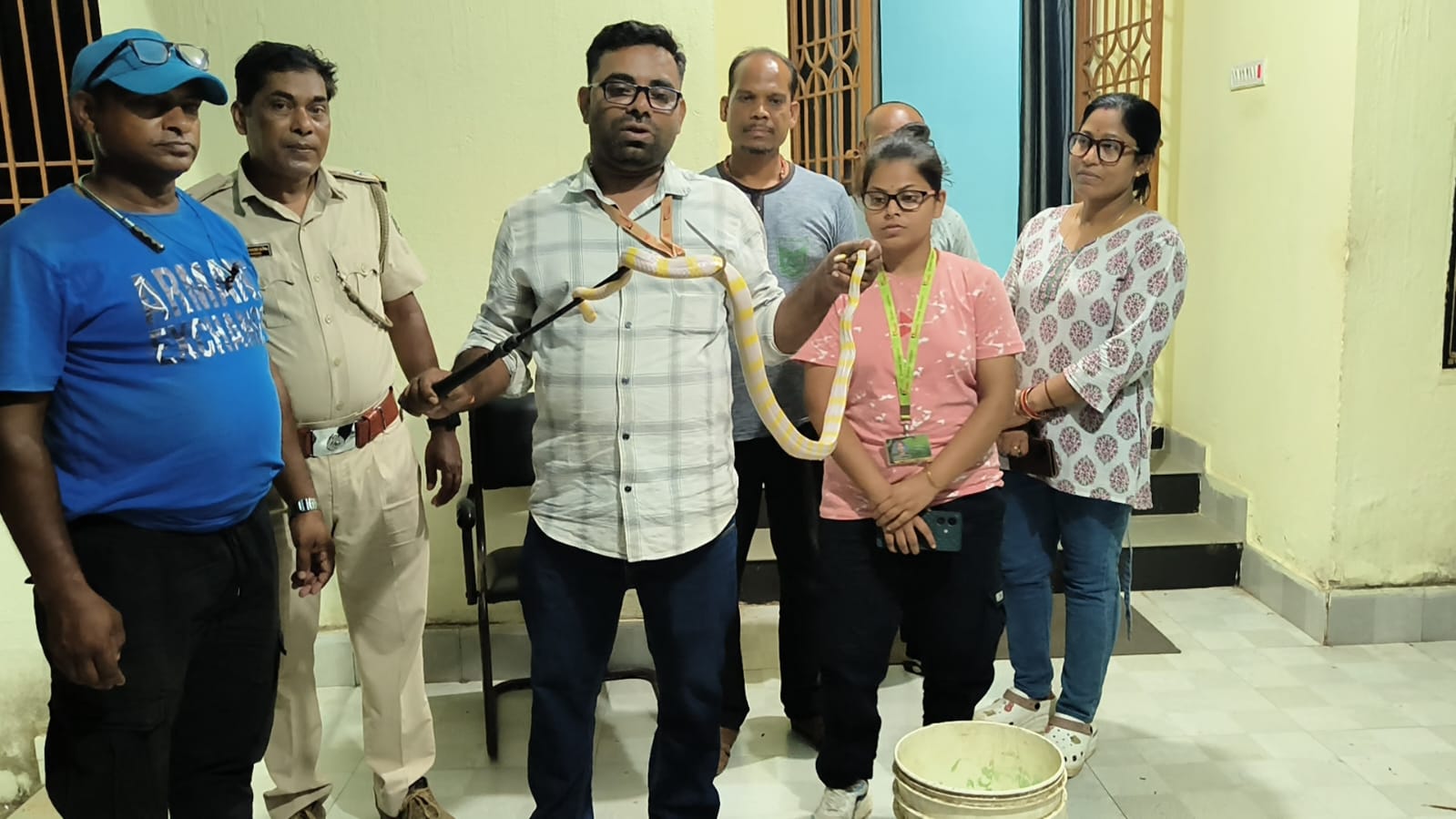 ଭଦ୍ରକରେ ହଳଦିଆ-ଧଳା ରଙ୍ଗର ରଣା ସାପ ଉଦ୍ଧାର