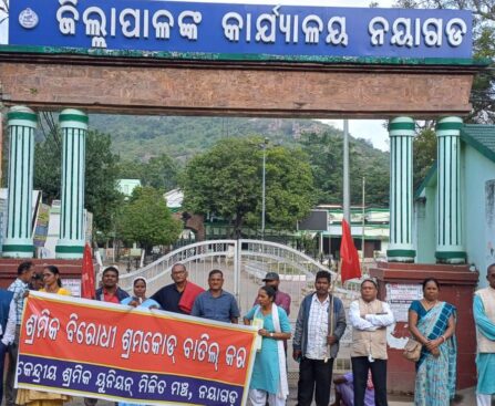 ନୟାଗଡ, (ଓଡ଼ିଶା ଦର୍ପଣ):କେନ୍ଦ୍ର ସରକାର ଶ୍ରମିକ ମାନଙ୍କ ସ୍ଵାର୍ଥ ପାଇଁ ଉଦ୍ଦିଷ୍ଟ ଶ୍ରମ ଆଇନକୁ ବାତିଲ କରି ୨୨ନଭେମ୍ବରଠାରୁ ଶ୍ରମିକ ସ୍ଵାର୍ଥ ବିରୋଧୀ ଶ୍ରମ କୋଡ ଲାଗୁ କରୁଥିବାରୁ ଏହାର ପ୍ରତିବାଦରେ ସିଆଇଟିୟୁ ନେତୃତ୍ବରେ ନୟାଗଡ଼ ଜିଲ୍ଲାପାଳଙ୍କ କାର୍ଯ୍ୟାଳୟ ସମ୍ମୁଖରେ ବିକ୍ଷୋଭ ପ୍ରଦର୍ଶନ କରାଯାଇଛି। ଏହି ଦିବସରେ ନୟାଗଡ଼ ଛକଠାରୁ ଏକ ପଟୁଆରରେ ଯାଇ ଶ୍ରମିକ ନେତା ଆଡଭୋକେଟ ଶରତଚନ୍ଦ୍ର ବେହେରାଙ୍କ ଅଧ୍ୟକ୍ଷତାରେ ବିକ୍ଷୋଭ ସଭା ଅନୁଷ୍ଠିତ କରିଥିଲେ ବିଭିନ୍ନ ୟୁନିଅନର ପ୍ରତିନିଧି ବର୍ଗ। ମୋଦି ସରକାର […]