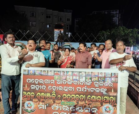 ନୟାଗଡ଼,(ଓଡ଼ିଶା ଦର୍ପଣ):ଜାମ୍ମୁ ଓ କାଶ୍ମୀରର ପହଲଗାମ୍ ପର୍ଯ୍ୟଟନ ସ୍ଥଳରେ ଗତ ୨୨ ତାରିଖରେ ଆତଙ୍କବାଦୀଙ୍କ ବର୍ବରୋଚିତ ଆକ୍ରମଣରେ ପ୍ରାଣହରାଇଥିବା ୨୯ ଜଣ ନିରୀହ ଭାରତୀୟଙ୍କୁ ଶ୍ରଦ୍ଧାଞ୍ଜଳି ଜଣାଇ ମା ‘ ଫାଉଣ୍ଡେସନ, ନୟାଗଡ଼ ତରଫରୁ ସ୍ଥାନୀୟ ଟ୍ରାଫିକ ଛକ ଠାରୁ ଆରମ୍ଭ ହୋଇ ତ୍ରିନାଥ ଛକ ଗାନ୍ଧୀ ପ୍ରତିମୂର୍ତ୍ତୀ ପର୍ଯ୍ୟନ୍ତ ମହମବତୀ ଶୋଭାଯାତ୍ରା ଅନୁଷ୍ଠିତ ହୋଇଯାଇଛି l ଅନୁଷ୍ଠାନର ସଭାପତି ବସନ୍ତ କୁମାର ମିଶ୍ର ପୌରହିତ୍ୟରେ ଓ ସମ୍ପାଦକ ରଂଜନ ରଶ୍ମି ଜେନାଙ୍କ ପ୍ରତ୍ୟେକ୍ଷ ତତ୍ୱାବଧାନରେ ଆୟୋଜିତ […]