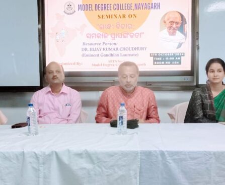 ନୟାଗଡ଼,(ଓଡ଼ିଶା ଦର୍ପଣ):ଲାଠିପଡାସ୍ଥିତ ମଡେଲ ଡିଗ୍ରୀ କଲେଜଠାରେ କଳା ସମାଜ ଆନୁକୁଲ୍ୟରେ ଗାନ୍ଧୀଜୀଙ୍କ ଚିନ୍ତାଧାରାକୁ ନେଇ ଏକ ଆଲୋଚନାଚକ୍ର ଅଧ୍ୟକ୍ଷ ଡକ୍ଟର ମାନସ ରଞ୍ଜନ ଶତପଥୀଙ୍କ ପୌରୋହିତ୍ୟରେ ଅନୁଷ୍ଠିତ ହୋଇଯାଇଅଛି। ପ୍ରଖ୍ୟାତ ସାହିତ୍ୟିକ ତଥା ଗାନ୍ଧୀ ଆଲୋଚକ ଡକ୍ଟର ବିଜୟ କୁମାର ଚୈ।ଧୁରୀ ଯୋଗ ଦେଇ ‘ଗାନ୍ଧୀ ବିଚାର;ସମକାଳ ପ୍ରାସଙ୍ଗିକତା’ ଉପରେ ନିଜର ବକ୍ତବ୍ୟ ପ୍ରଦାନ କରିଥିଲେ। ଆଧୁନିକ ସମାଜରେ ଗାନ୍ଧୀ ଚେତନାର ଉପଯୋଗିତା ତଥା ଦୈନନ୍ଦିନ ଜୀବନରେ ଗାନ୍ଧୀଙ୍କ ଆଦର୍ଶରେ ଅନୁପ୍ରାଣିତ ହୋଇ କାର୍ଯ୍ୟ କରିବା ଉପରେ […]