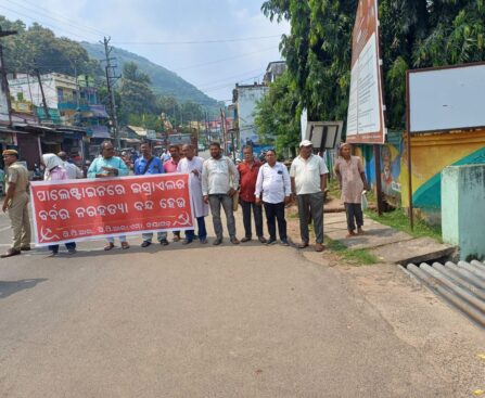 ନୟାଗଡ଼,(ଓଡ଼ିଶା ଦର୍ପଣ): ନୟାଗଡ଼ ସଦର ମହକୁମାରେ ସି.ପି.ଆଇ.(ଏମ୍) ନେତୃତ୍ବରେ ପଟୁଆର ସହିତ ନୟାଗଡ଼ ସହର ପରିକ୍ରମା ପୂର୍ବକ ପାଲେଷ୍ଟାଇନ ସଂହତି ଦିବସ ପାଳନ କରାଯାଇଛି। ଆମେରିକା ମଦତପୁଷ୍ଟ ଯୁଦ୍ଧଖୋର ଇସ୍ରାଏଲ ଯେଭଳି ବର୍ଷାଧିକ କାଳ ପାଲେଷ୍ଟାଇନକୁ କବଳିତ କରିବାପାଇଁ ଆକ୍ରମଣ ଚଳାଇ ରଖିଛି, ବୋମା ଓ କ୍ଷେପଣାସ୍ତ୍ର ମାଡ଼ରେ ହଜାରହଜାର ପାଲେଷ୍ଟାଇନୀୟ ସାଧାରଣ ନାଗରିକ, ଛୋଟଶିଶୁ, ବୃଦ୍ଧ ବୃଦ୍ଧା, ସ୍କୁଲ ଛାତ୍ରଛାତ୍ରୀଙ୍କୁ ହତ୍ୟା କରୁଛି,ତାହାର ପ୍ରତିବାଦରେ ବାମପନ୍ଥୀ ଦଳଙ୍କ ପକ୍ଷରୁ ଆହୂତ ଦେଶବ୍ୟାପୀ କାର୍ଯ୍ୟକ୍ରମର ଆଧାରରେ ଏହି […]