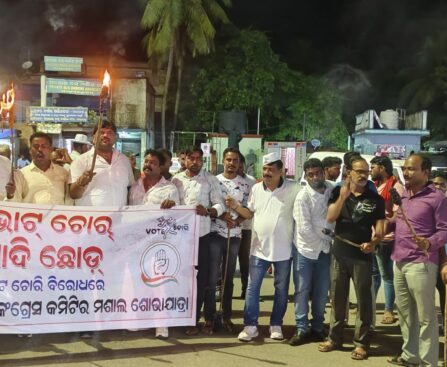 ନୟାଗଡ଼,(ଓଡ଼ିଶା ଦର୍ପଣ):ଅଖିଳ ଭାରତ କଂଗ୍ରେସ କମିଟି ସଭାପତି,ମାଲିକାର୍କୁନ ଖଡଗେ ଓ ଓଡ଼ିଶା ପ୍ରଦେଶ କଂଗ୍ରେସ କମିଟି ସଭାପତି ଭକ୍ତଚରଣ ଦାସଙ୍କ ନିର୍ଦ୍ଦେଶରେ ନୟାଗଡ଼ ଜିଲ୍ଲା କଂଗ୍ରେସ କମିଟି ସଭାପତି ସତ୍ୟବ୍ରତ ନୟକଙ୍କ ନେତୃତ୍ଵରେ ଭୋଟ ଚୋର ଗାଦି ଛୋଡ୍ ଦାବୀରେ ନୟାଗଡ଼ ସିନ୍ଦୁରିଆ ଠାରୁ ଦକ୍ଷୀଣକାଳୀ ମନ୍ଦିର ପର୍ଯ୍ୟନ୍ତ ଏକ ମଶାଳ ଶୋଭାଯାତ୍ରା ଅନୁଷ୍ଠିତ ହୋଇଯାଇଛି । ଏହି ଶୋଭାଯାତ୍ରାରେ କଂଗ୍ରେସ କାର୍ଯ୍ୟକର୍ତା ଯୋଗଦେଇ ଭୋଟ ଚୋରି କରି ଶାସନ କରୁଥିବା ମୋଦି ସରକାରଙ୍କ ବିରୋଧରେ ସ୍ଳୋଗାନ […]