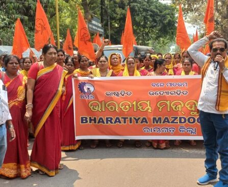 ରାୟଗଡ଼ା : ତା ୧୮/୦୩/୨୫ଭାରତୀୟ ମଜଦୂର ସଂଘ ର କେନ୍ଦ୍ରୀୟ ସଂଗଠନ ନିଷ୍ପତ୍ତି କ୍ରମେ ଭାରତର ସମସ୍ତ ଜିଲ୍ଲାପାଳଙ୍କ ଜରିଆରେ ମାନ୍ୟବର ପ୍ରଧାନମନ୍ତ୍ରୀ ଏବଂ କେନ୍ଦ୍ର ଅର୍ଥମନ୍ତ୍ରୀଙ୍କ ଉଦ୍ଦେଶ୍ୟରେ ଦାବିପତ୍ର ପ୍ରଦାନ କରାଯାଇଛି । ଏହି ଅବସରରେ ରାୟଗଡ଼ା ଜିଲ୍ଲା ସମ୍ପାଦକ ଶ୍ରୀ ଗଣେଶ କୁମାର ସାହୁଙ୍କ ନେତୃତ୍ୱରେ ରାୟଗଡ଼ା ଠକର ବାପା ଆଶ୍ରମ ଠାରୁ ଏକ ବିରାଟ ଶୋଭାଯାତ୍ରାରେ ବାହାରି ସହରର ମୂଖ୍ୟ ରାସ୍ତା ଦେଇ ଜିଲ୍ଲାପାଳଙ୍କ କାର୍ଯ୍ୟାଳୟ ସମ୍ମୁଖରେ ପହଞ୍ଚି ବିକ୍ଷୋଭ ପ୍ରଦର୍ଶନ କରିବା […]