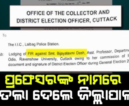 କଟକ ଜିଲ୍ଲାପାଳଙ୍କ ଦସ୍ତଖତର ହୋଇଥିଲା ଜାଲିଆତି। ପ୍ରାୟ ୫ ବର୍ଷ ପରେ ସ୍ପଷ୍ଟ ହୋଇଛି ଏହି ଘଟଣା। ଏହା ପରେ ରେଭେନ୍ସା ବିଶ୍ୱବିଦ୍ୟାଳୟର ଆସିଷ୍ଟାଷ୍ଟ ପ୍ରଫେସରଙ୍କ ବିରୋଧରେ ଏତଲା ଦେଇଛନ୍ତି କଟକ ଜିଲ୍ଲାପାଳ।୨୦୧୯ ମସିହାରେ ନିର୍ବାଚନ ସମୟରେ ରେଭେନ୍ସା ବିଶ୍ଵବିଦ୍ୟାଳୟର ଓଡ଼ିଆ ବିଭାଗର ଆସିଷ୍ଟାଣ୍ଟ ପ୍ରଫେସର ବିଜୟ ଲକ୍ଷ୍ମୀ ଦାଶ ଛୁଟି ପାଇଁ ଆବେଦନ କରିଥିଲେ। ନିର୍ବାଚନ ପାଇଁ କୋଡ୍ ଅଫ୍ କଣ୍ଡକ୍ଟ ଲାଗିଥିବାରୁ ବିଶ୍ୱବିଦ୍ୟାଳୟ କର୍ତ୍ତୃପକ୍ଷ ବିଜୟଲକ୍ଷ୍ମୀଙ୍କୁ ଜିଲ୍ଲାପାଳ ତଥା ଜିଲ୍ଲା ନିର୍ବାଚନ ଅଧିକାରୀଙ୍କଠାରୁ ଅନୁମତି […]