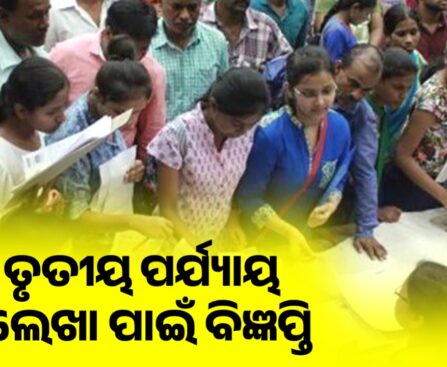 +୨ ତୃତୀୟ ନାମଲେଖା ନେଇ ସାମ୍ସ ୱେବ୍ସାଇଟ୍ରେ ୨୨ରୁ ଆବେଦନ ପ୍ରକ୍ରିୟା ଆରମ୍ଭ ହେବ । ୨୭ ତାରିଖ ମଧ୍ୟରେ ଆବେଦନ କରିପାରିବେ ଶିକ୍ଷାର୍ଥୀ । ନଭେମ୍ବର ୧ରେ ମେଧା ତାଲିକା ପ୍ରକାଶ ପାଇବ ।ଚୟନ ହୋଇଥିବା ଶିକ୍ଷାର୍ଥୀମାନେ ୨ରୁ ୫ ତାରିଖ ମଧ୍ୟରେ ନାମଲେଖାଇ ପାରିବେ ।ୱେଟିଂ ତାଲିକାରେ ଥିବା ଛାତ୍ରଛାତ୍ରୀମାନେ ୭ ଓ ୮ ତାରିଖ ଅପରାହ୍ଣ ୩ଟା ପର୍ଯ୍ୟନ୍ତ ପଞ୍ଜୀକରଣ କରିବା ପରେ ସେହିଦିନ ସାଢ଼େ ୪ଟାରେ ଚୂଡ଼ାନ୍ତ ୱେଟିଂ ତାଲିକା ପ୍ରକାଶ […]