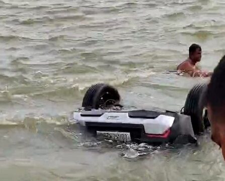 କୋଣାର୍କ-ପୁରୀ ବେଳାମାର୍ଗରେ ନଦୀକୁ ଖସିଲା କାର। ଅଳ୍ପକେ ବର୍ତ୍ତିଗଲେ ବିଡ଼ିଓ