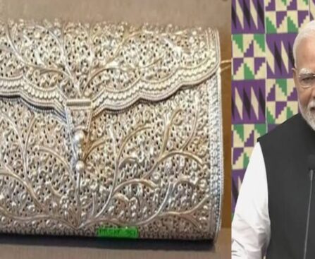 ଘାନା ରାଷ୍ଟ୍ରପତିଙ୍କ ପତ୍ନୀଙ୍କୁ ମୋଦୀଙ୍କ ତାରକସୀ ପର୍ସ ଉପହାର