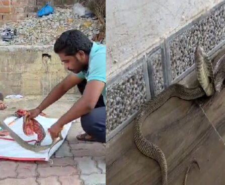 ମୂଷା ଅଠାରେ ପଡ଼ିଲା ସାପ। ପ୍ରାୟ ୨୦ ମିନିଟ ଧରି ହେଲା ଛଟପଟ ।
