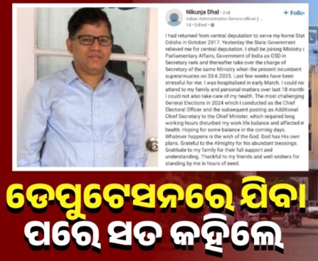 ଡେପୁଟେସନରେ ଯିବା ପରେ ସତ କହିଲେ ମୁଖ୍ୟମନ୍ତ୍ରୀଙ୍କ ପୂର୍ବତନ ବ୍ୟକ୍ତିଗତ ସଚିବ